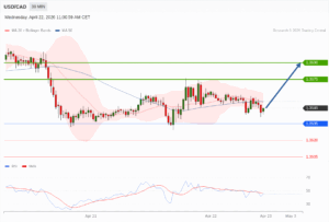 Daily Pivot Point of USD/CAD Chart in 30M Time Frame is: 1.3640 and Preferred situation is Bullish. Our Preferred Senario is Long Positions (Buy) above 1.3640 with first target at 1.3680 and second target at 1.3700 in extension as take profits.