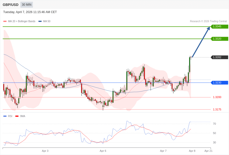 Daily Pivot Point of GBP/USD Sybmol in 30M Time Frame Chart is: 1.3230 and Preferred situation is Bullish.