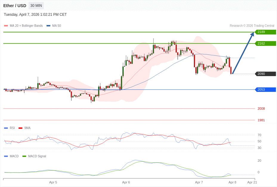 Daily Pivot Point of ETHEREUM Sybmol in 30M Time Frame Chart is: 2053 and Preferred situation is Bullish.