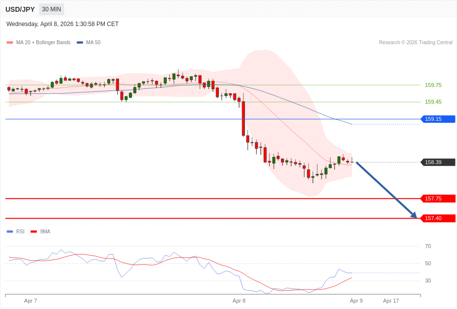 If the market moves in the opposite direction, Alternative Senario is Long Positions (Buy) above 159.15 with first target at 159.45 and second target at 159.75 in extension as take profits