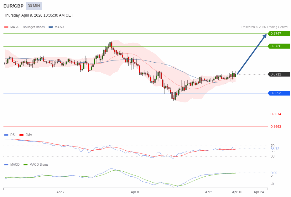 Daily Pivot Point of EUR/GBP Sybmol in 30M Time Frame Chart is: 0.8693 and Preferred situation is Bullish.