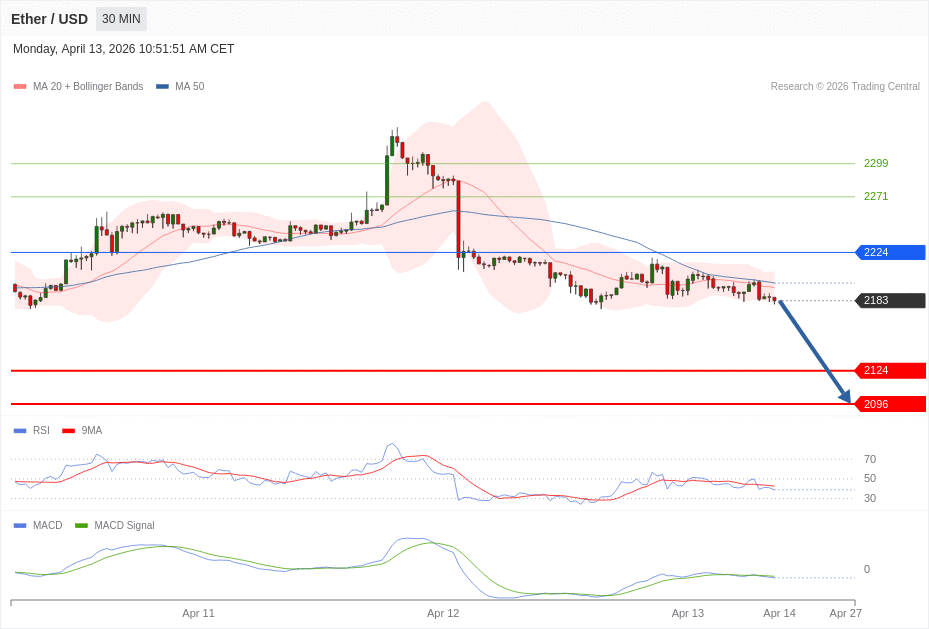 Daily Pivot Point of ETHEREUM Sybmol in 30M Time Frame Chart is: 2224 and Preferred situation is Bearish.
