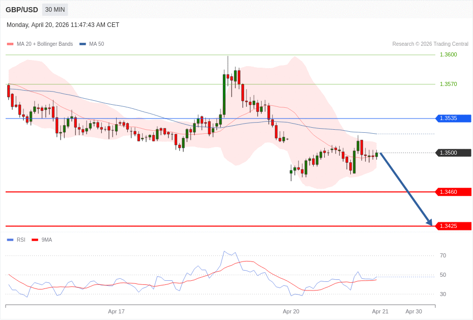 Daily Pivot Point of GBP/USD Sybmol in 30M Time Frame Chart is: 1.3535 and Preferred situation is Bearish.