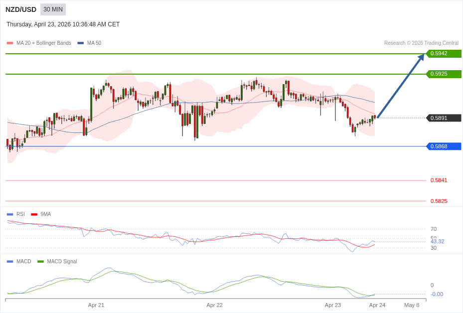 Daily Pivot Point of NZD/USD Sybmol in 30M Time Frame Chart is: 0.5868 and Preferred situation is Bullish.