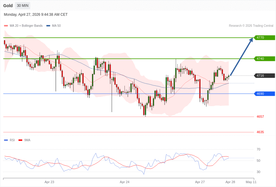 Daily Pivot Point of GOLD (XAU) Sybmol in 30M Time Frame Chart is: 4690 and Preferred situation is Bullish.