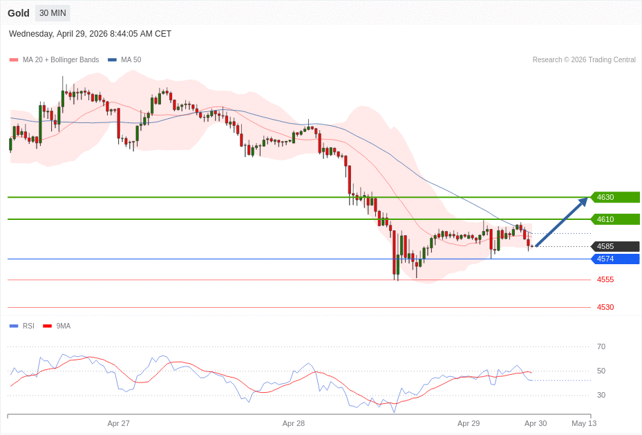 Our Preferred Senario is Long Positions (Buy) above 4574 with first target at 4610 and second target at 4630 in extension as take profits.