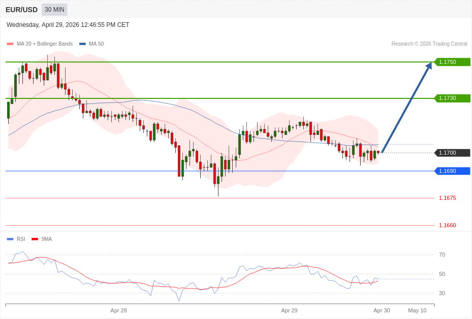 Daily Pivot Point of EUR/USD Sybmol in 30M Time Frame Chart is: 1.1690 and Preferred situation is Bullish.