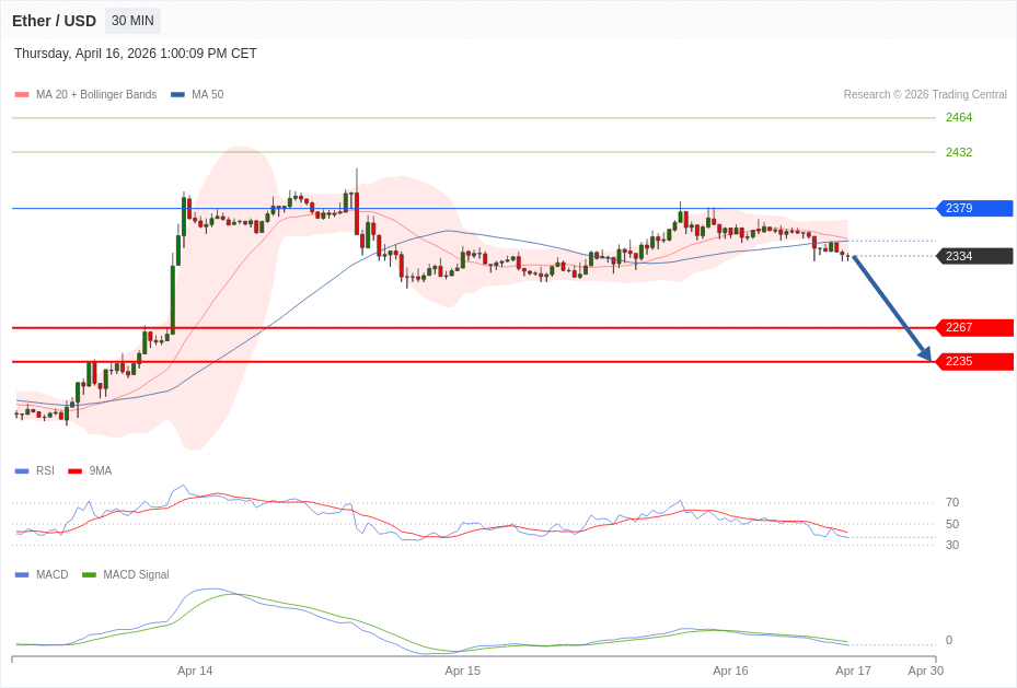 Daily Pivot Point of ETHEREUM Chart in 30M Time Frame is: 2379 and Preferred situation is Bearish. Our Preferred Senario is Short Positions (Sell) under 2379 with first target at 2267 and second target at 2235 in extension as take profits.