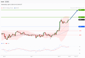Daily Pivot Point of GOLD (XAU) Chart in 30M Time Frame is: 4810 and Preferred situation is Bullish. Our Preferred Senario is Long Positions (Buy) above 4810 with first target at 4850 and second target at 4870 in extension as take profits.