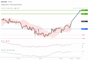 Daily Pivot Point of NZD/USD Chart in 30M Time Frame is: 0.5877 and Preferred situation is Bullish. Our Preferred Senario is Long Positions (Buy) above 0.5877 with first target at 0.5941 and second target at 0.5956 in extension as take profits.