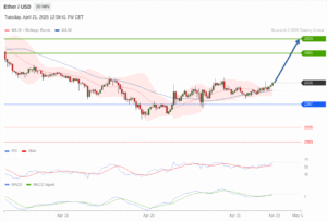 Daily Pivot Point of ETHEREUM Chart in 30M Time Frame is: 2287 and Preferred situation is Bullish. Our Preferred Senario is Long Positions (Buy) above 2287 with first target at 2401 and second target at 2433 in extension as take profits.