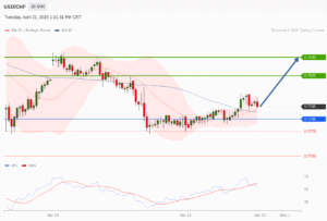 Daily Pivot Point of USD/CHF Chart in 30M Time Frame is: 0.7785 and Preferred situation is Bullish. Our Preferred Senario is Long Positions (Buy) above 0.7785 with first target at 0.7820 and second target at 0.7835 in extension as take profits.